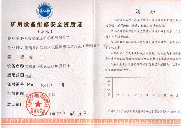 采煤機(jī)大修資格證